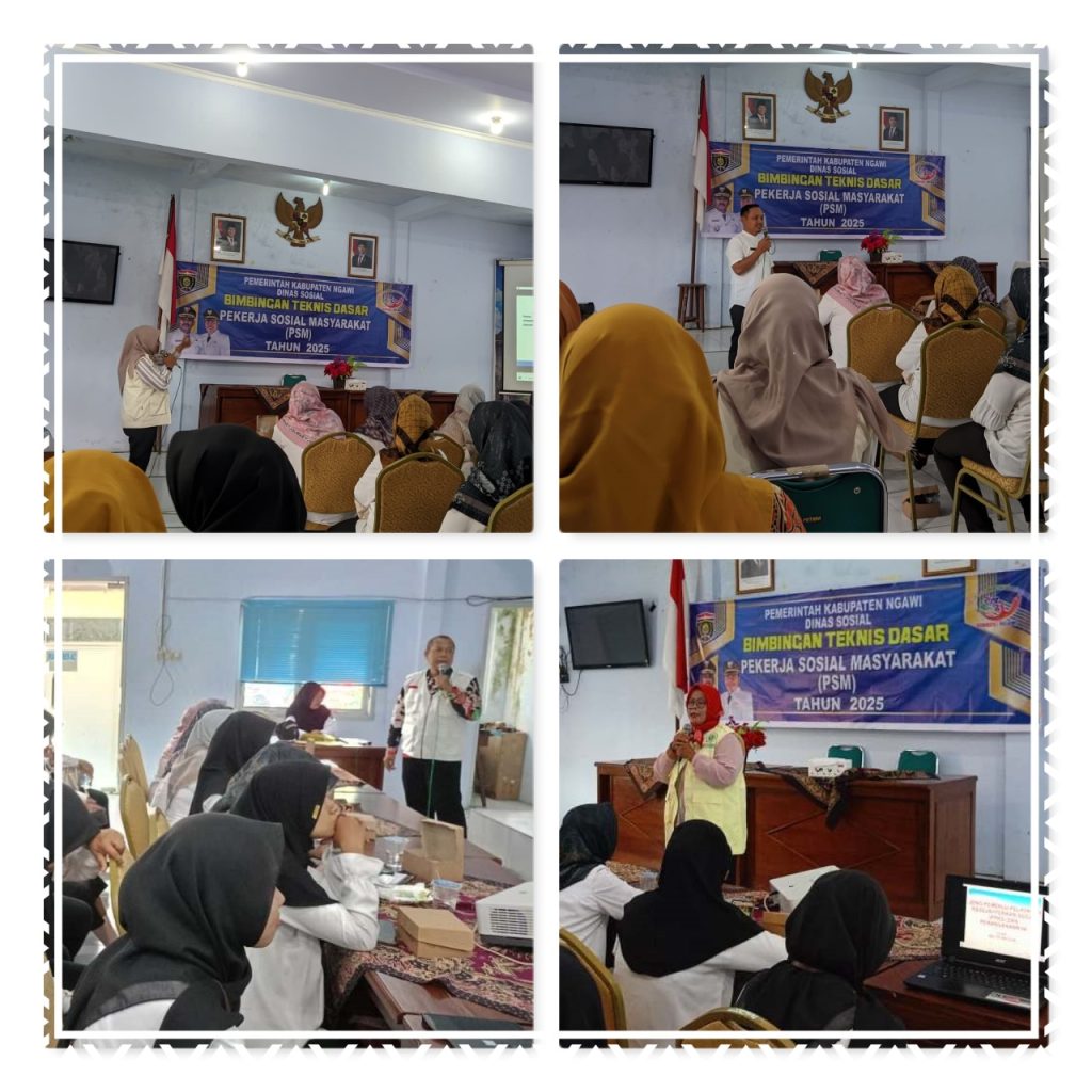 Selasa, 14 Oktober 2025 – Dalam rangka peningkatan penyelenggaraan Kesejahteraan Sosial di wilayah Kabupaten Ngawi, Dinas Sosial Kab. Ngawi, melalui Bidang Pemberdayaan Sosial, menyelenggarakan Bimbingan Teknis Dasar Pekerja Sosial Masyarakat (PSM) yang dilaksanakan di Aula Dinas Sosial Kab. Ngawi. Kegiatan ini dimaksudkan untuk memberikan bimbingan berisi pengetahuan dan pemahaman mengenai konsep dasar Penyelenggaraan Kesejahteraan Sosial bagi calon Pekerja Sosial Masyarakat (PSM).