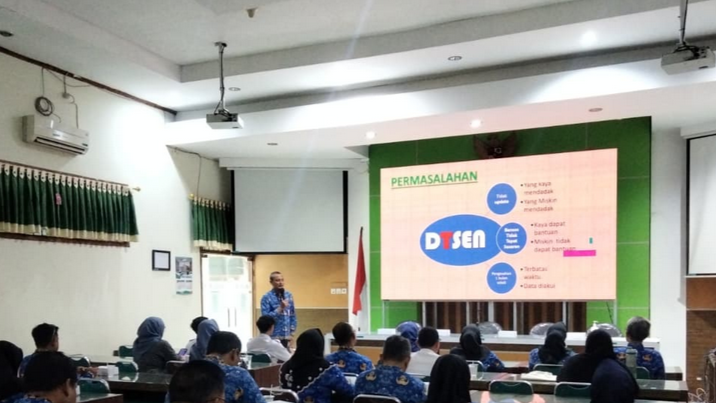 Dinas Sosial Kabupaten Ngawi melalui Kepala Bidang Perlindungan dan Jaminan Sosial pada sesi lanjutan memberikan materi terkait Data Tunggal Sosial Ekonomi Nasional (DTSEN) di Kabupaten Ngawi. Materi yang disampaikan dimulai dengan dasar hukum, pengelolaan, mekanisme, serta permasalahan yang ada pada DTSEN. Sehingga pertemuan ini dapat menjadi sosialisasi khususnya bagi pengampu Germas di Kabupaten Ngawi karena DTSEN merupakan basis data yang terintegrasi untuk mendukung program pembangunan mulai dari perencanaan, evaluasi serta keputusan strategis pemerintah. Dengan sosialisasi ini, Dinas Sosial berharap pemahaman masyarakat terhadap DTSEN meningkat. Dengan DTSEN yang baik, tentunya akan meningkatkan ketepatan sasaran intervensi pemerintah khususnya dalam penanggulanan kemiskinan.