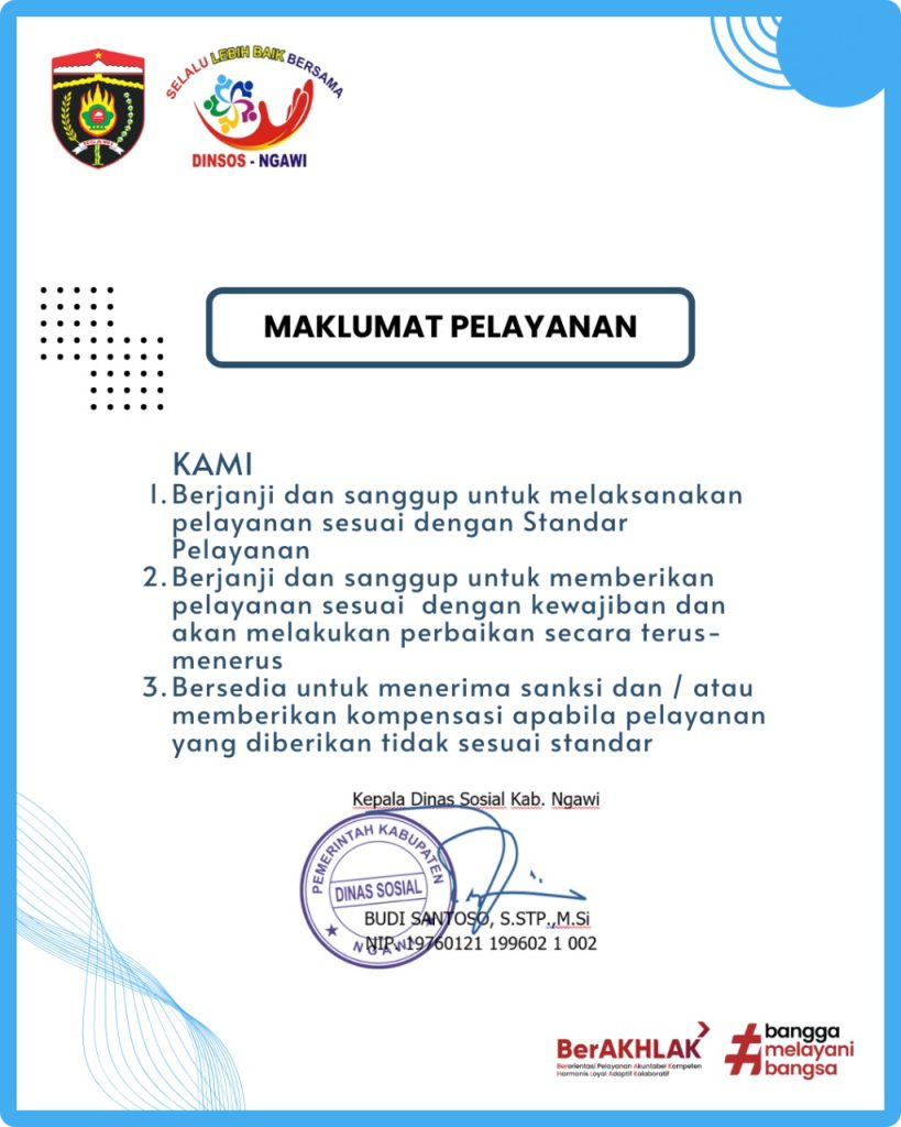 INFORMASI AKSES PELAYANAN BUKU PELAYANAN PUBLIK DINAS SOSIAL buku pelayanan dinas sosial kab. ngawiDownload STANDAR PELAYANAN PUBLIK (SPP) DINAS SOSIAL SK_SPP Dinsos 2025Download SOP PELAYANAN DINAS SOSIAL Share this: Click to share on Facebook (Opens in new window) Facebook Click to share on X (Opens in new window) X